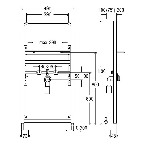 Предназначена для раковин. Рама изготовлена из стали с нанесением порошкового покрытия. В комплект поставки входят: регулируемый по высоте и звукоизолированный крепеж для водорозеток Viega, сливное колено DN40/50, резиновый ниппель DN40/30, крепежный материал для модуля (к полу) и керамики, саморезы для фиксации к стенам, отверстие Ø 11 мм для крепления на деревянном каркасе или установки крепежного элемента для поручня (модель 8169), выдвижные опоры. Кнопка покупается отдельно.