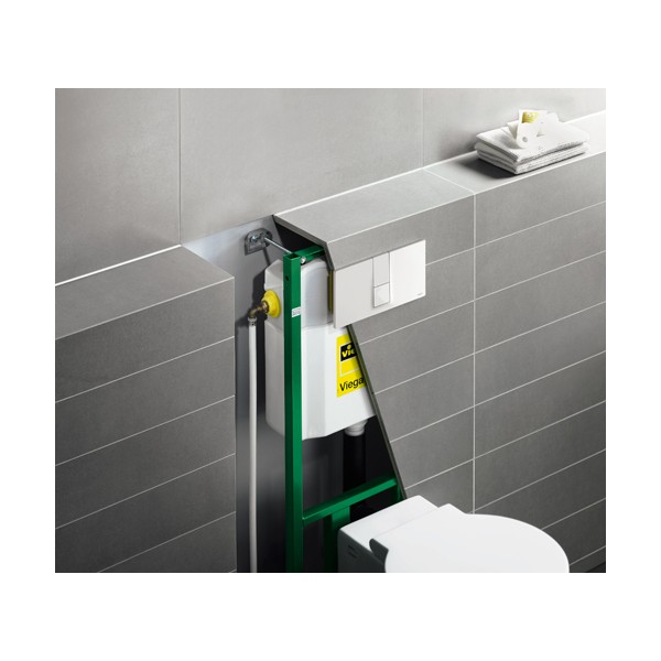 Предназначена для навесного унитаза. Рама изготовлена из стали с нанесением порошкового покрытия. В комплект поставки входят: смывной бачок Visign 2H, совместим с любыми нажимными клавишами Viega любых серий, с механизмом двойного смыва (полный смыв - 9 или 6 л/ малый смыв - 3 л),