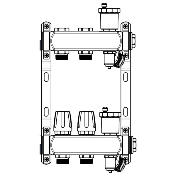 Коллекторная группа Millennium без расходомеров с 2 выходами предназначена для распределения и регулировки потоков в системах отопления. Она обеспечивает равномерное и стабильное распределение теплоносителя по контурам. Изготовлена коллекторная группа из высококачественной нержавеющей стали, что гарантирует ее долговечность и надежность.