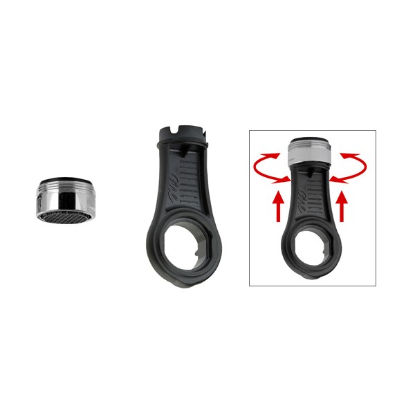 Лейка изготовлена из латуни и покрыта хромированным напылением. Отличительной особенностью лейки является запатентованный аэратор изготовленный по инновационным технологиям из высококачественной хромированной латуни, который противостоит отложению известкового налета и укомплектован специальным ключом для его прочистки.
