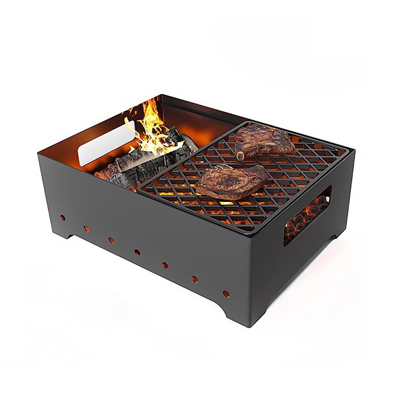 Везувий Турист 2 представляет собой конструкцию из 2х-миллиметровой стали. Дополнительную прочность Туристу 2 придают углы, выполненные методом сгибания стальных заготовок, а также то, что сплошные сварные швы перемещены на короткие стенки мангала. Таким образом Турист 2 надёжно держит форму при нагревании. Длинные же боковые стороны мангала Турист 2 усилены стальными прутками толщиной 10 миллиметров, основательно приваренными для предотвращения деформации изделия, а также для создания возможности размещения одной или двух чугунных решёток Везувий Стейк. В боковых стенках Турист 2 имеется по 7 отверстий для поступления воздуха с каждой стороны, что обеспечивает равномерное горение топлива по всему периметру мангала.