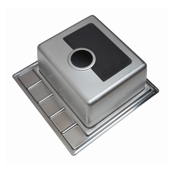 Размеры мойки: 500*500*215 мм, чаши: 400*340*205 мм, глубина чаши: 200 мм.