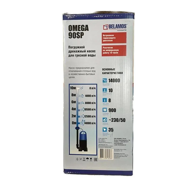 Насос дренажный Belamos Omega 90 SP - погружные дренажные насосы для слабозагрязненной воды отлично работают по выкачиванию дождевых, сточных или дренажных вод. Дренажный насос применяют для прокачки чистых или загрязненной (мутной) вод из подвалов, закрытых емкостей, резервуаров и бассейнов. Благодаря поплавковому выключателю, нет необходимости постоянно наблюдать за насосом. При появлении жидкости насос включается сам, а когда вода будет удалена автоматически отключится. Belamos Omega могут использоваться для хозяйственных нужд, подачи воды из колодцев, баков, а также полива растений на участке.