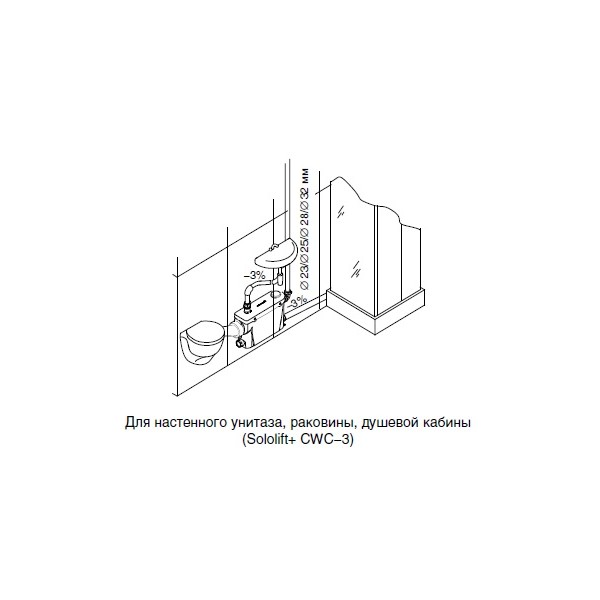 Применяется при удаленном расположении самотечной канализации или в подвальных помещениях.