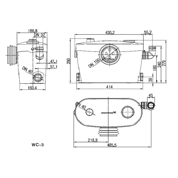 Насос для автоматического перекачивания сточных вод от напольного унитаза, раковины, душевой кабины, биде.