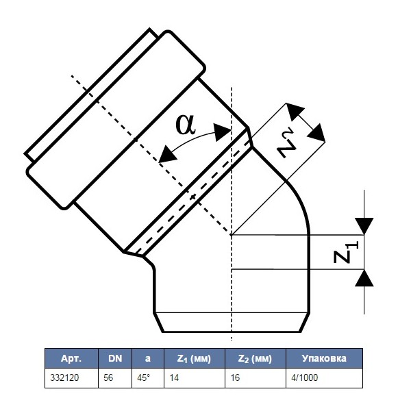 Отвод бесшумный 56-45° Skolan dB Ostendorf 332120