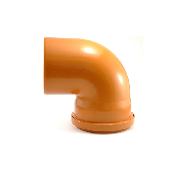 Отвод рыжий 110-90° — идеальный фитинг для внешней канализации, который позволяет соединять две уличные канализационные трубы диаметром 110 мм под углом 90 градусов.