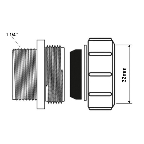 Переход 1 1/4-32 шотландской марки McAlpine серии BV3WH используется для прямого подсоединения сифонов модели Hepvo 32 компании McAlpine и прочих сифонов и узлов с типовой трубной резьбой.