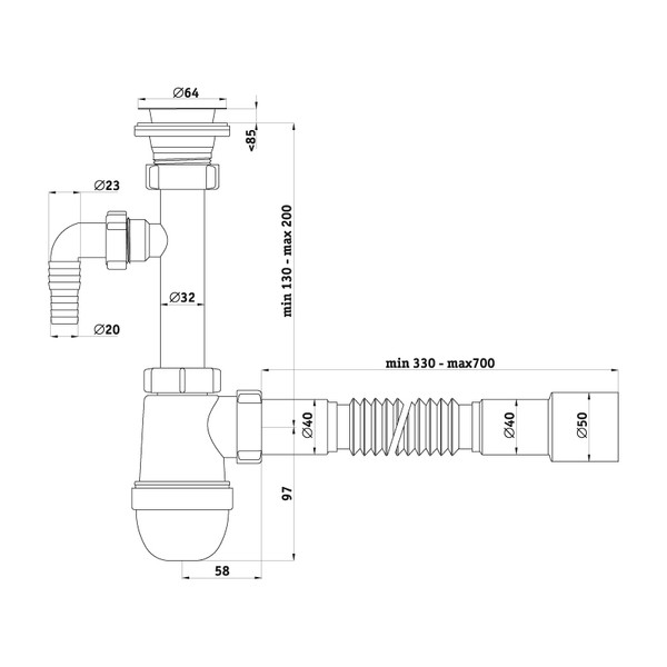 Сифон 1 1/4-40 с отводом для стиральной машины и гофрой 40-40/50 Ани пласт C1315