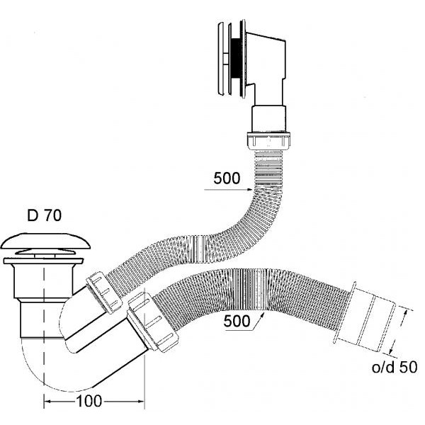 Особенности. Тип "кнопка". Длина перелива 500 мм.