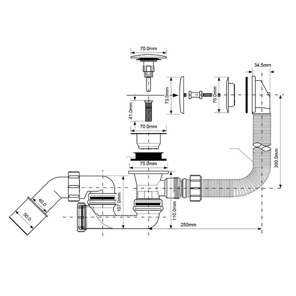 Особенности. Тип "кнопка". Длина перелива 500 мм.