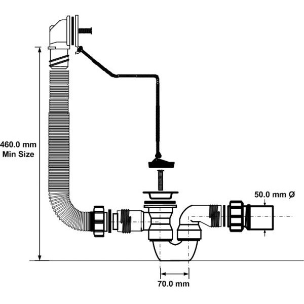 Данную модель сифона возможно монтировать на нестандартные модели ванн. Дополнительно возможно докупить переливную трубу необходимой длины.