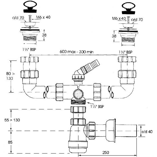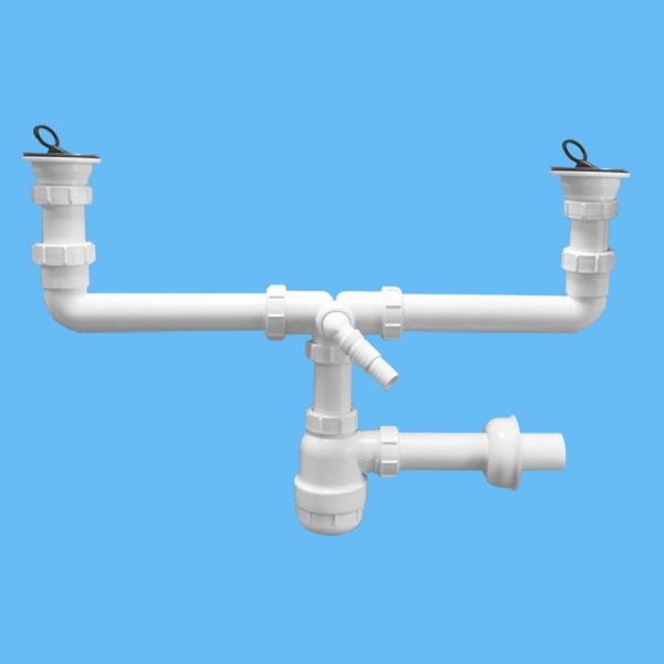 Сифон двойной 1 1/2-40 с отводом для стиральной или посудомоечной машины и трубкой шотландского производителя McAlpine серии MRSK5 предназначен для установки в раковинах с двумя чашами.