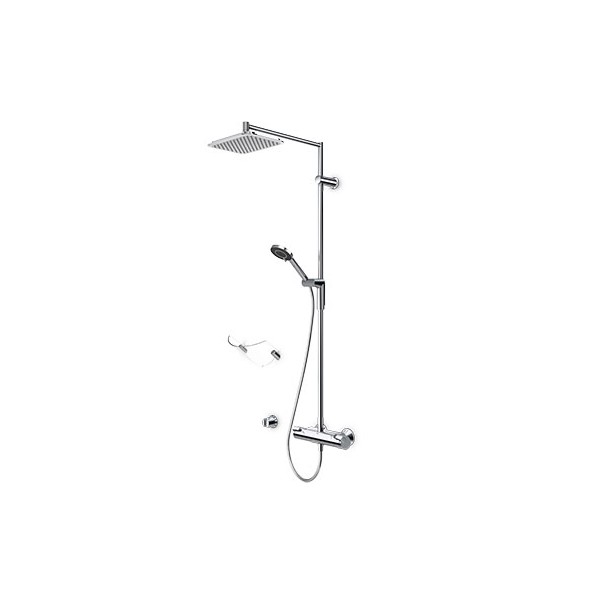 Tермостатический смеситель с душем rain shower и удобными рукоятками. Оснащен легким в использовании переключателем режимов и ограничителем температуры воды на рукоятке. Контроль за расходом воды в режиме EcoFlow. Комплект включает ручной душ с быстрым переключением режимов и защитой от известкового налета, держатель для душа и настенный кронштейн. В комплект также входят эксцентриковые соединители, декоративные розетки, грязевые фильтры и обратные клапаны.