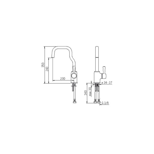 Смеситель для кухни с поворотным изливом и встроенным аэратором. В заводской настройке излив поворачивается на 110°, можно перенастроить чтобы излив поворачивался на 60° или 85°.