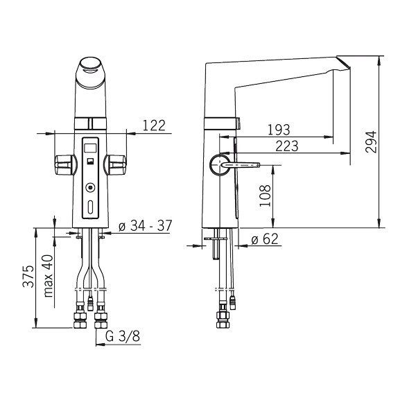 Смеситель для кухни с удобными рукоятками для горячей и холодной воды, бесконтактной функцией, дисплеем для отображения температуры воды, высоким поворотным изливом, аэратором. Расход горячей и холодной воды регулируется отдельными рукоятками. Угол поворота извива составляет 120° (заводская установка). По желанию поворот излива может быть ограничен до 60° или 80°. Для активации бесконтактной подачи воды поднесите руки к датчику. Температура воды при бесконтактной работе регулируется поворотом кольца между смесителем и изливом. Бесконтактная функция легко включается/ выключается. Работает от трансформатора 230/5 В (входит в комплект поставки). Смеситель оснащен грязевыми фильтрами.