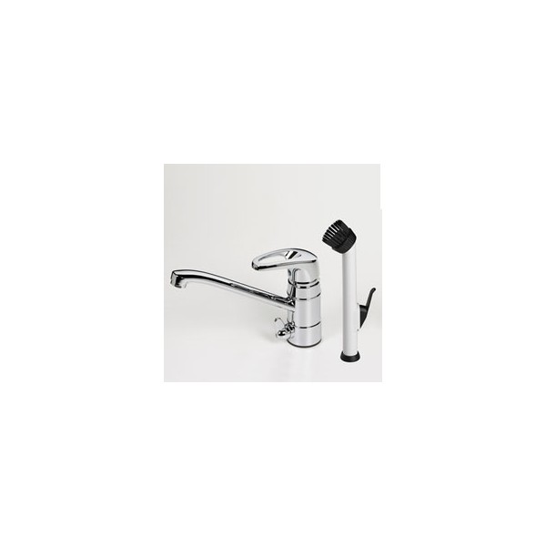 Смеситель для кухни с клапаном для посудомоечной машины и щеткой для чистки, с поворотным изливом. Угол поворота излива 100º (заводская установка), может быть изменен. Двухкомпонентная прочная рукоятка обеспечивает удобство использования. Встроенные опции ограничения температуры и напора воды.