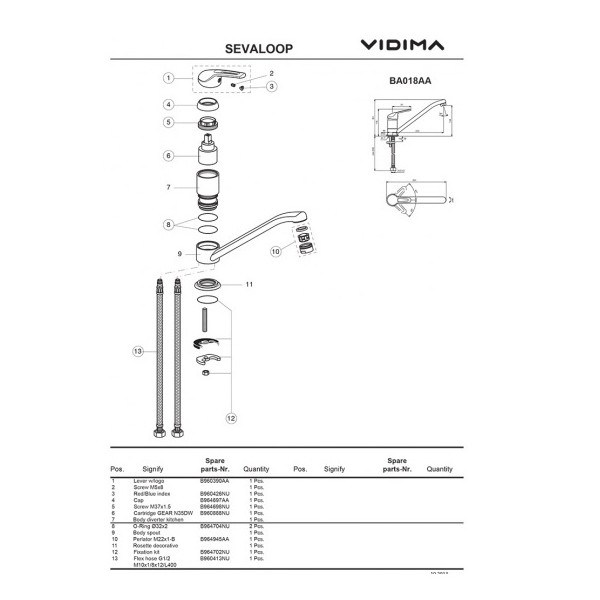 Смеситель для кухни Сева Луп B7709AA Vidima BA018AA