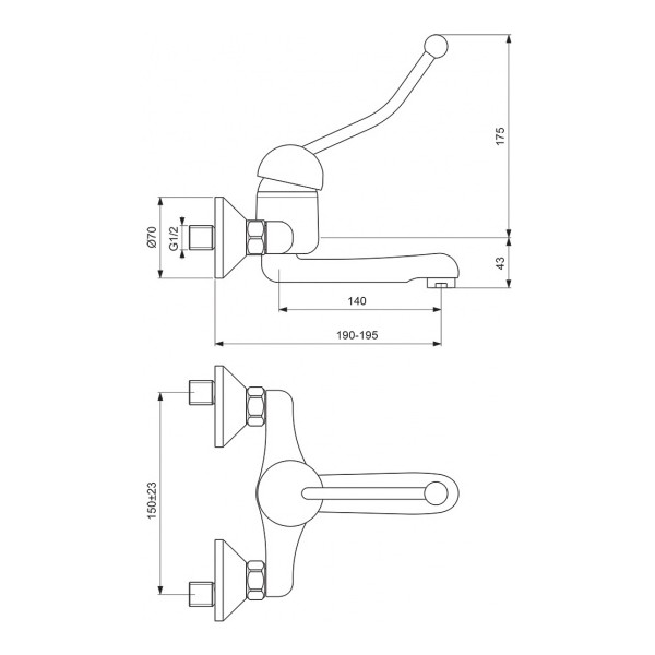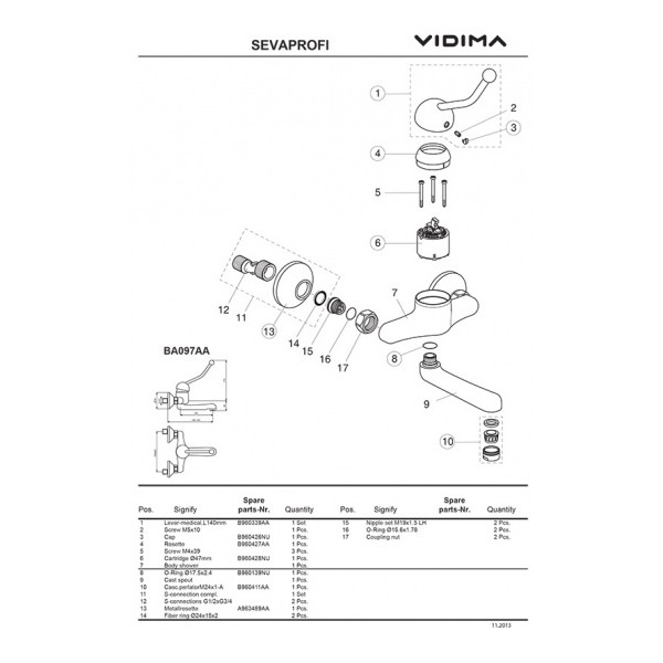 Смеситель для умывальника настенный локтевой Сева Профи BA097AA Vidima BA097AA