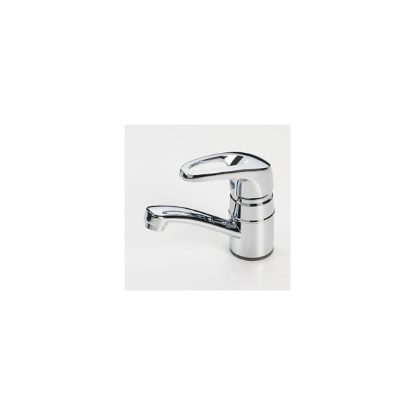 Cмеситель для умывальника с поворотным изливом (125 мм). Двухкомпонентная прочная рукоятка обеспечивает удобство использования. Встроенные опции ограничения температуры и напора воды.