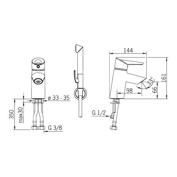 Смеситель для умывальника с удобной рукояткой, фиксированным изливом и аэратором. В комплект входит ручной душ Oras Bidetta, душевой шланг и настенный кронштейн. В производстве были использованы только экологические материалы.