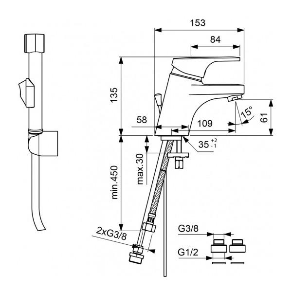 Смеситель для умывальника с гигиеническим душем Форм Vidima BA062AA