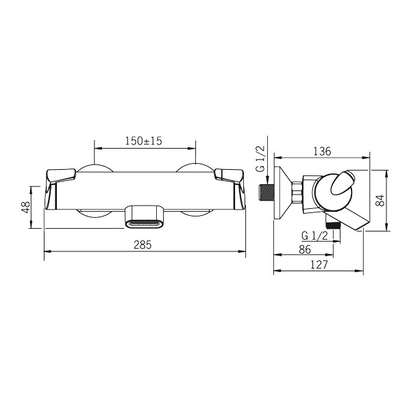Tермостатический смеситель для ванны и душа с удобными рукоятками. Оснащен легким в использовании переключателем режимов и ограничителем температуры воды на рукоятке. Контроль за расходом воды в режиме EcoFlow. В комплект входят эксцентриковые соединители, декоративные розетки, грязевые фильтры и обратные клапаны.