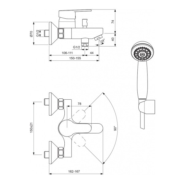 Смеситель для ванной и душа Сева Фреш Vidima BA030AA