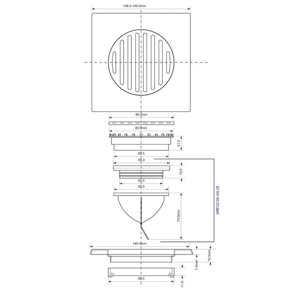 Трап-насадка MRFGC3SSV-110 предназначена для отведения сточных вод с поверхности пола в канализационную сеть. Фильтрующая сетка при этом задерживает мусор, а обратный клапан с функцией «сухой гидрозатвор» (силиконовый клапан) препятствует проникновению запахов из канализации даже при длительном отсутствии в нем воды. Изделие регулируется по высоте, подстраиваясь под размеры поддона.