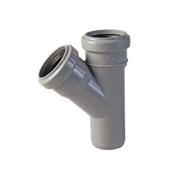 Тройник 50-40-45° применяется для создания бокового отвода меньшего диаметра в системе внутренней канализации под углом 45 градусов.