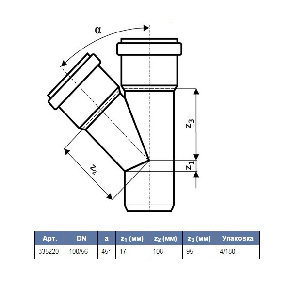 Тройник бесшумный 110-56-45° Skolan dB Ostendorf 335220