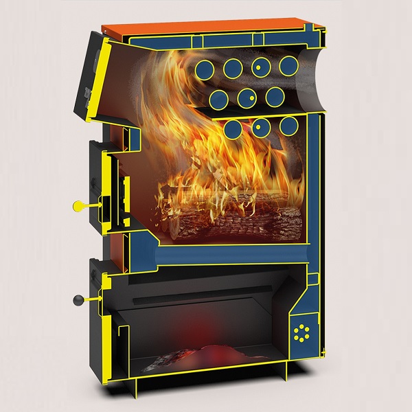 Твердотопливный котел Теплодар Куппер ПРО 36 предусматривает работу на дровах, угле или брикетах, способен поддерживать горение до 8 часов благодаря системе подачи вторичного воздуха в камеру сгорания и водотрубной колосниковой решетке. Куппер ПРО 36 при желании может быть дополнен газовой или пеллетной горелкой.