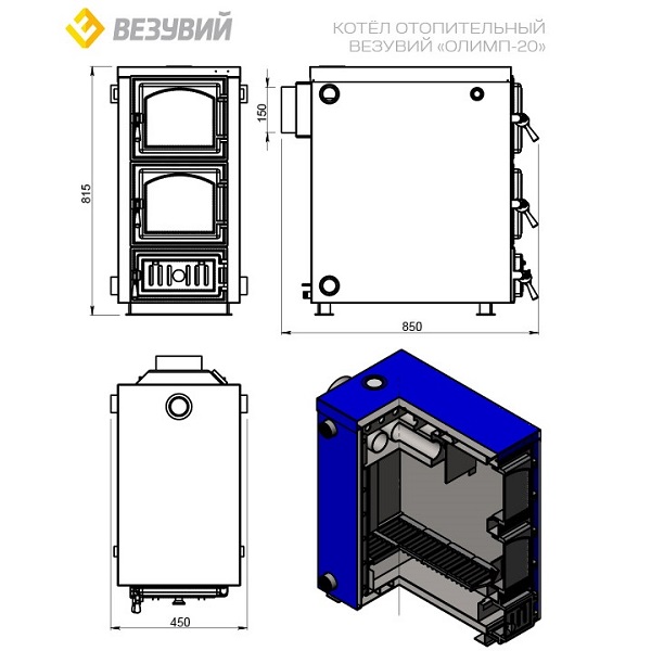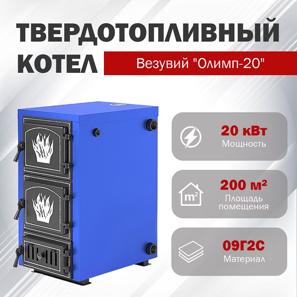 Котел отопительный твердотопливный Везувий Олимп-20 предназначен для обогрева жилых помещений.