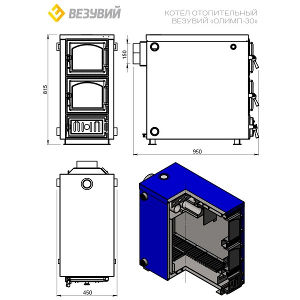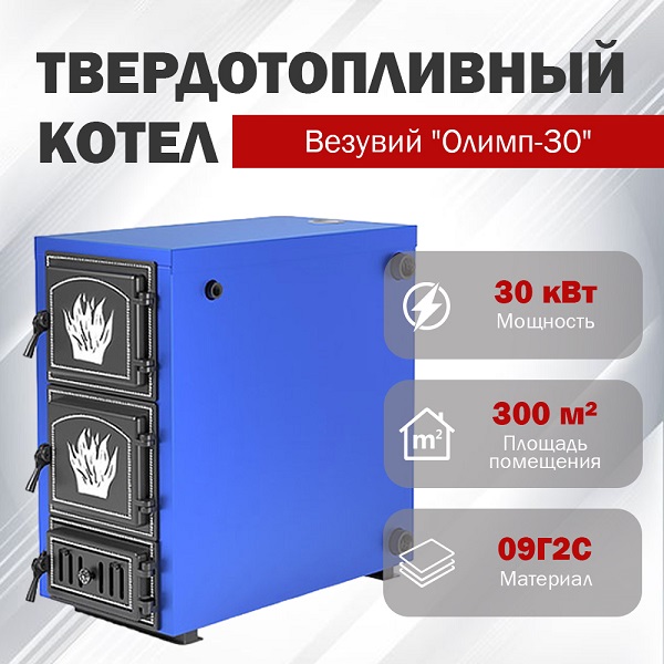 Котел отопительный твердотопливный Везувий Олимп-30 предназначен для обогрева жилых помещений.