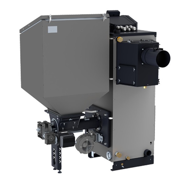 - реверсивная система защиты от заклинивания шнека, которая в случае обнаружения в топливе твердых кусков породы или инородных тел, включает механизм реверсивного движения шнеков. После 3-х тщетных попыток проломить породу механизм подачи останавливается, и котел сигнализирует о необходимом вмешательстве для чистки механизма подачи;