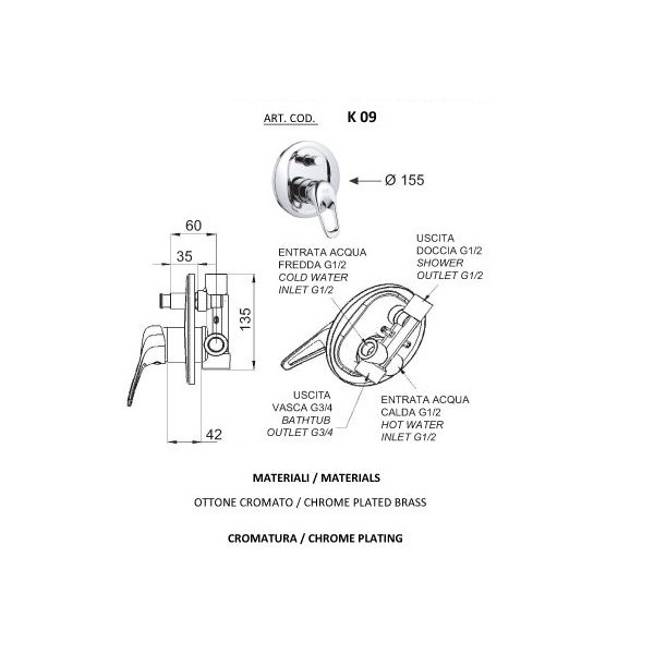 Встроенный смеситель для ванной и душа KISS Remer K 09